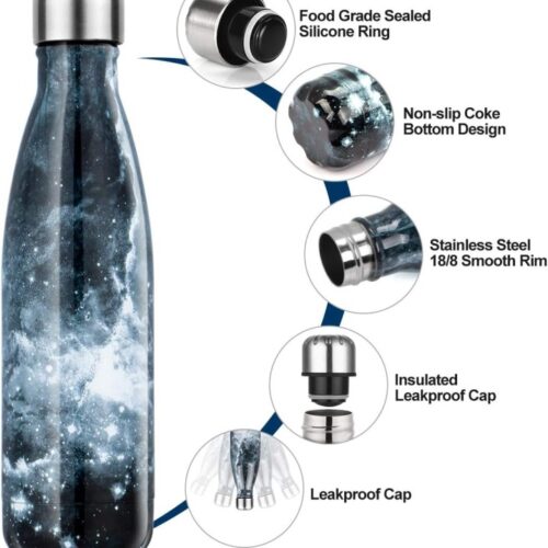 500ml Double Wall Printed Steel Bottle Black Star